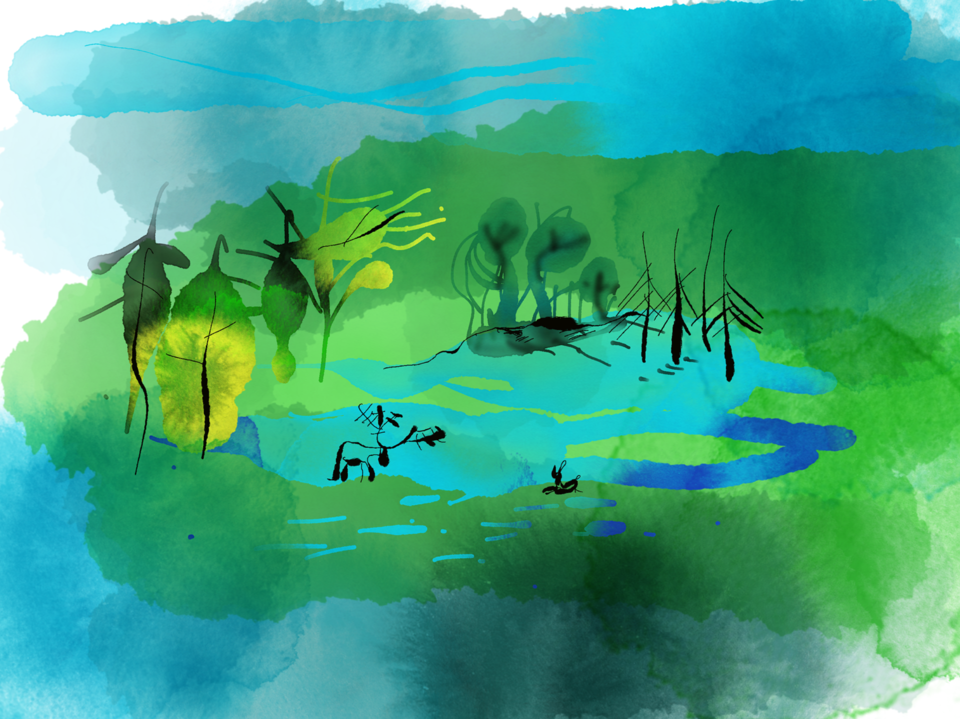Akryly, akvarely a digitální malba