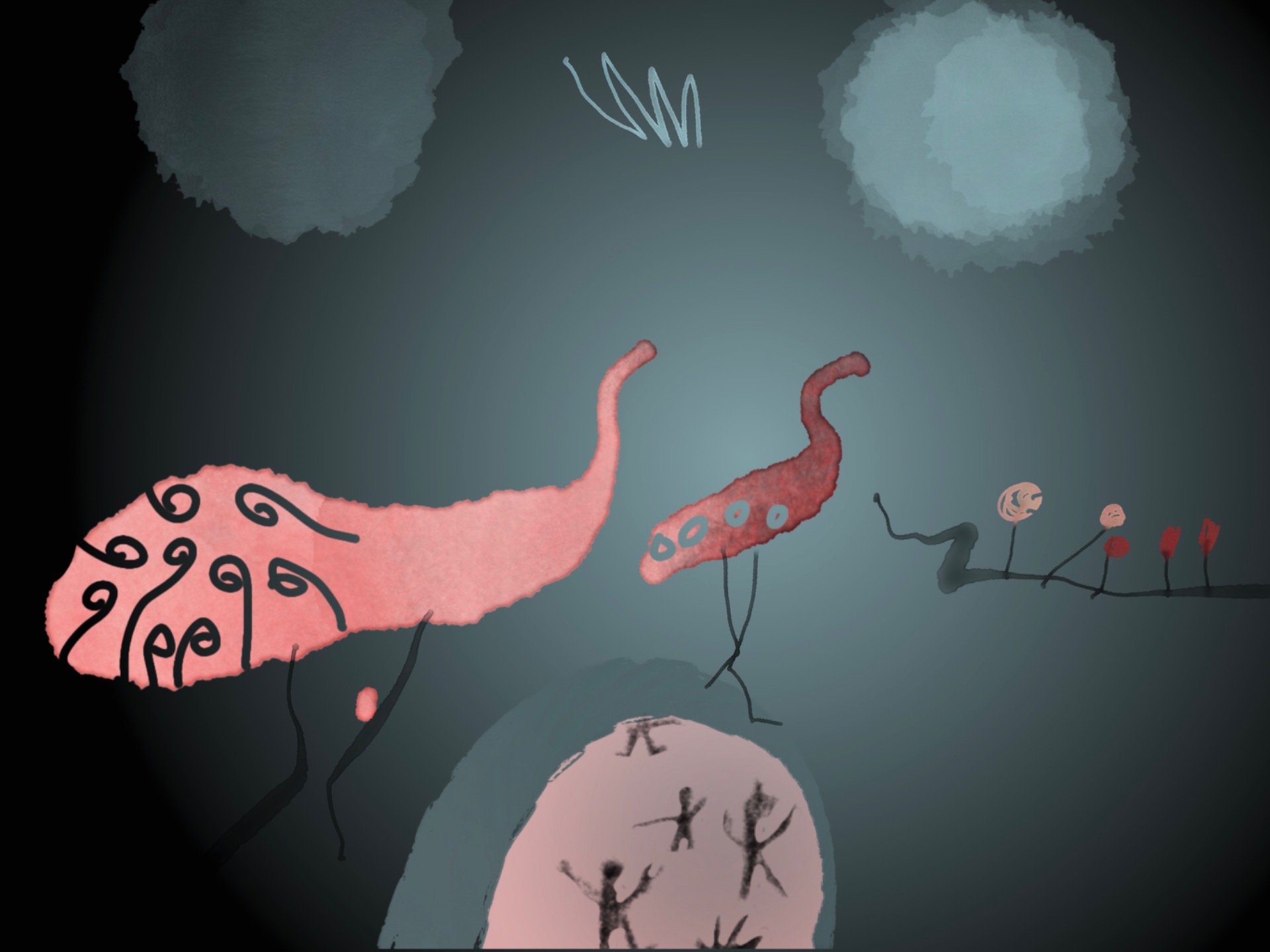 Jemná černobílá kresba zachycuje v několika jistých tazích okamžik, který dobře známe. Jednoduché linie nechávají vyniknout emocím i tichému napětí situace. Bez zbytečných detailů zve diváka, aby si příběh dokreslil vlastní fantazií.