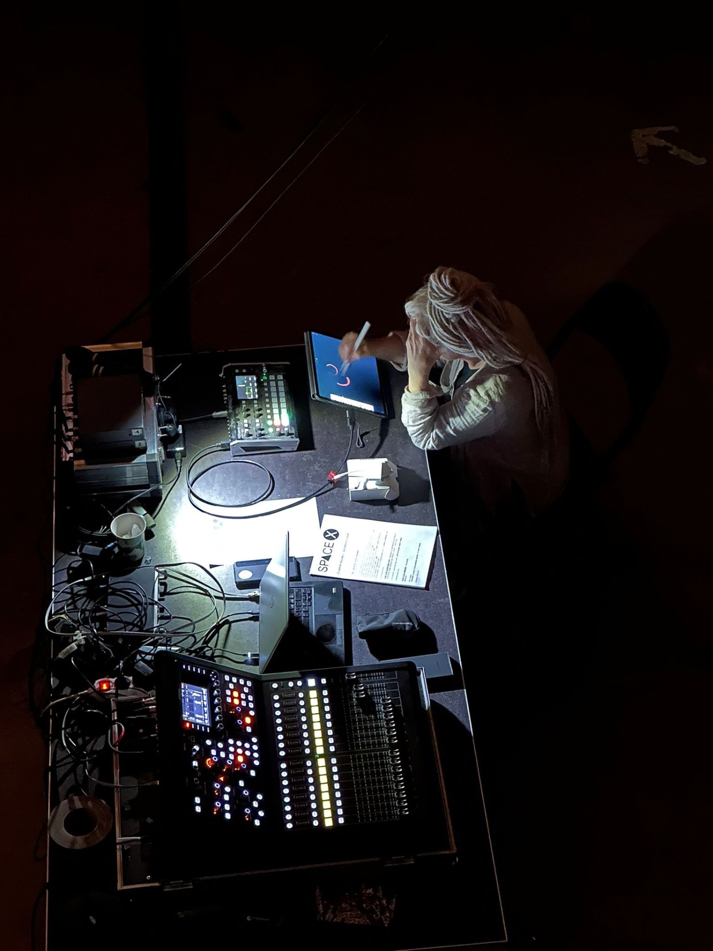 Unikátní vizuální doprovod hudební produkce živě na koncertě, který se odehrává intuitivně v rytmu a čase hudby. Zde Space X v Divadle X - doprovad Arve Henriksena a Davida Kollara